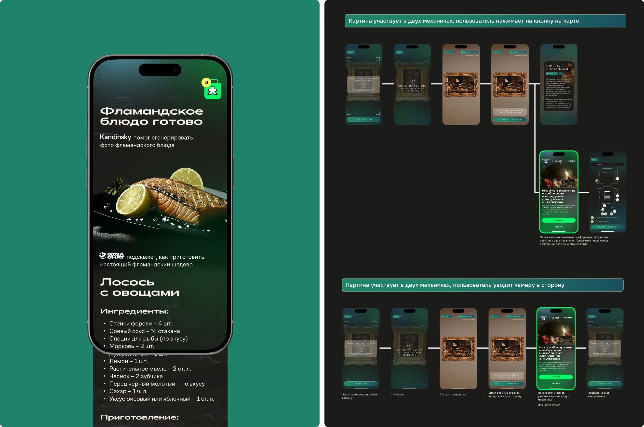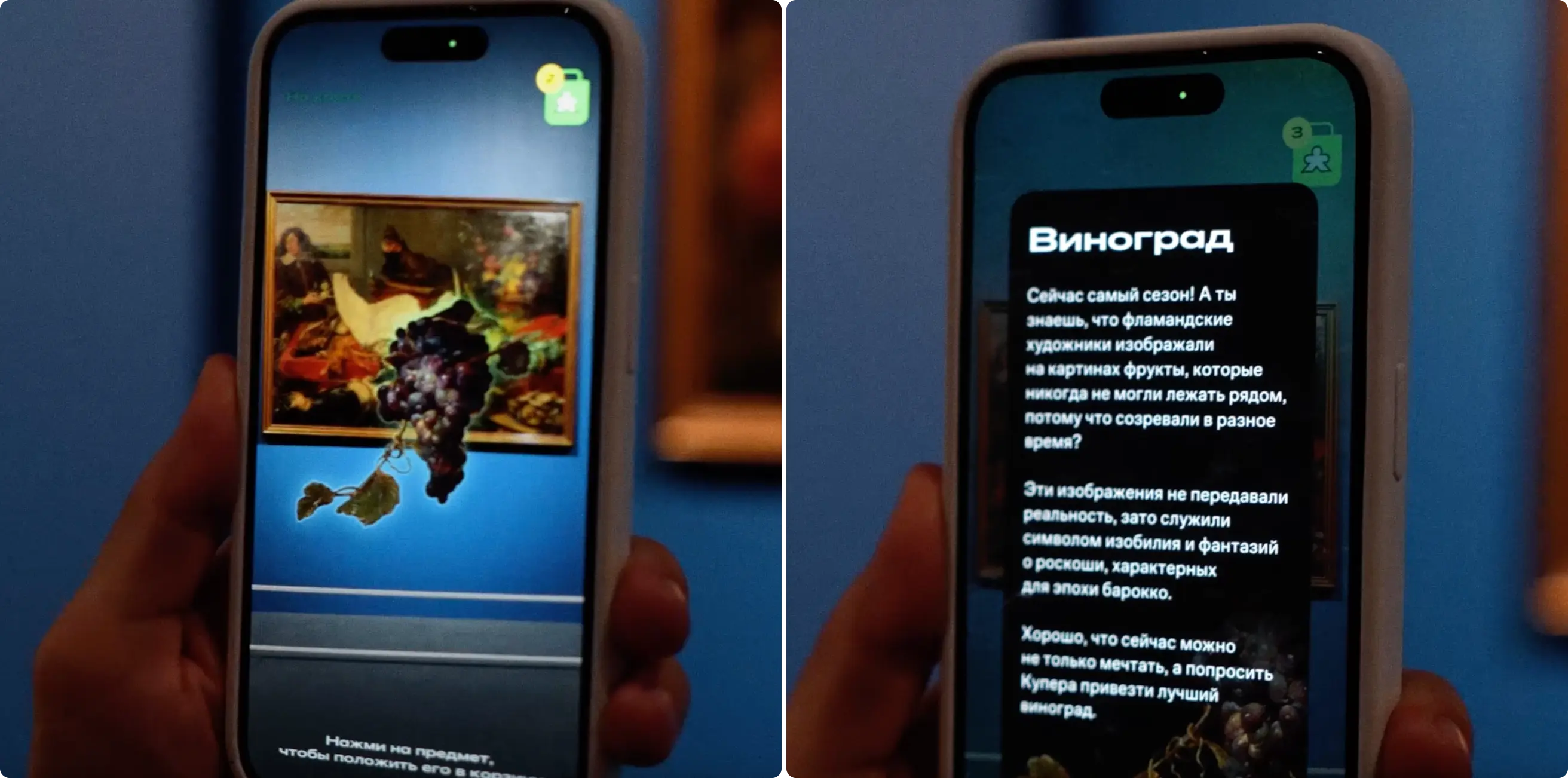 Мы не просто анимировали полотна, а придумали альтернативные сюжеты — «что могло произойти за кадром». AR-сцены дополняли оригиналы, не искажая смысл, и делали классику ближе и понятнее широкой аудитории.